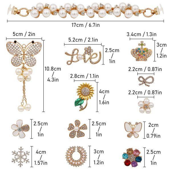 - Shoe decoration charms packing: Shoe charms include metal pearl shoe chain, butterfly shoe pendant, flower, snow flower, sunflower and other styles. A total of 14pcs, free matching makes your shoes more interesting and unique.