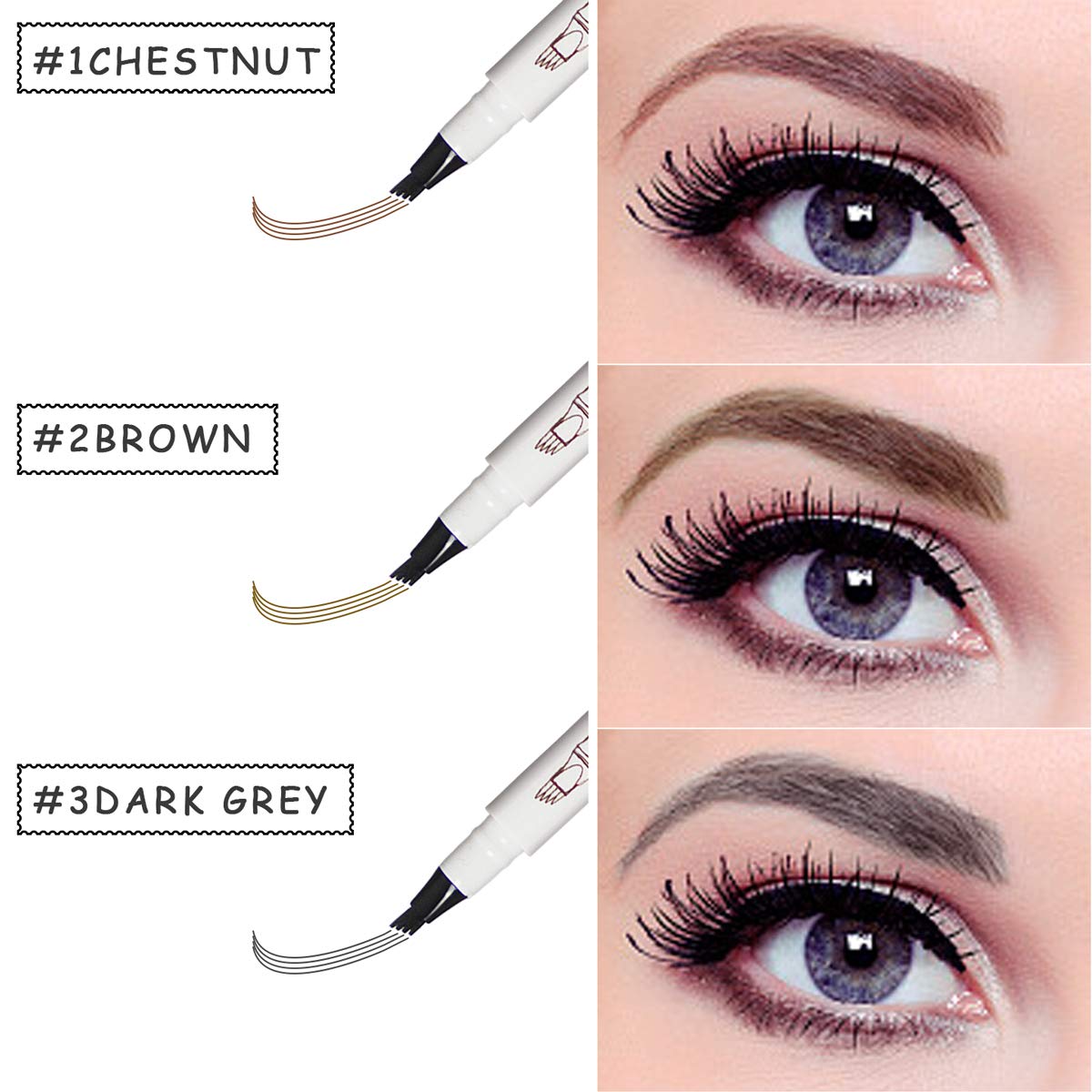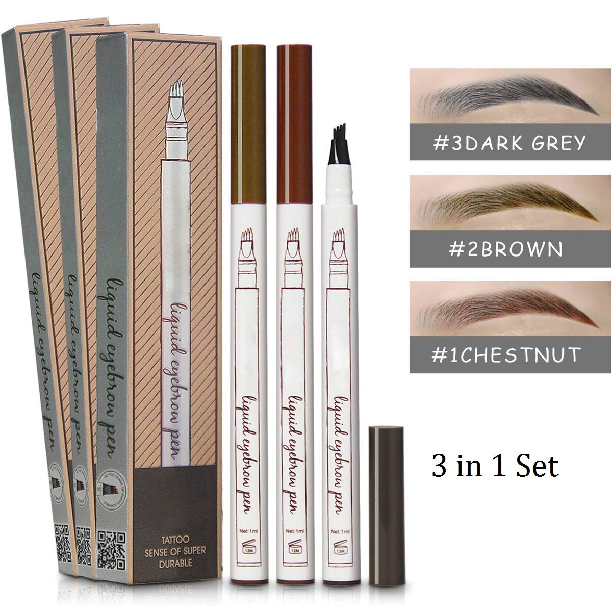 3Pcs Eyebrow Lamination Pen Waterproof Microblading Pen with Micro Fork Tip Cosmetic Makeup Tool Dark Grey Brown Chestnut By Pinkiou Tat Brow