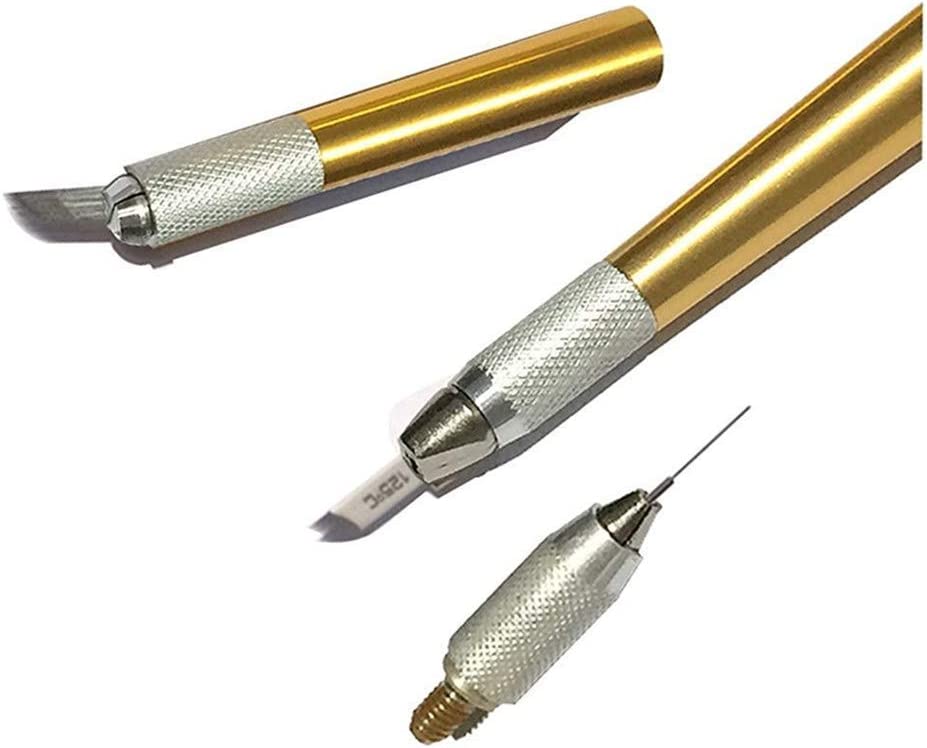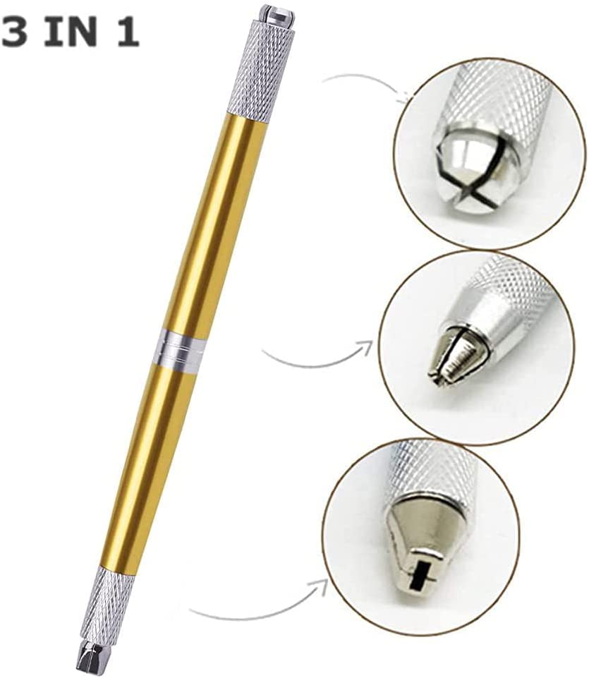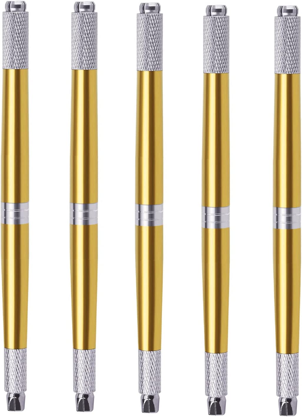 Pinkiou Microblading Pen 5 Piece Manual Tattoo Eyebrow Pens 3 in 1 For Permanent Makeup Supplies 5Pcs Tattoo Microblading Pen (Gold )