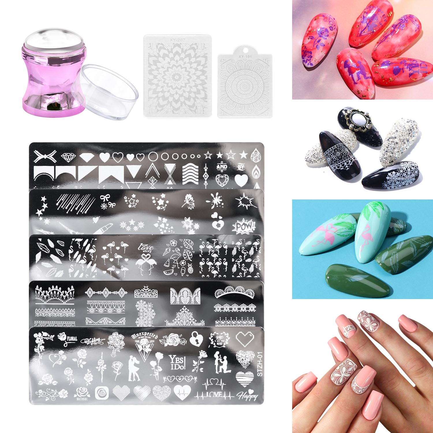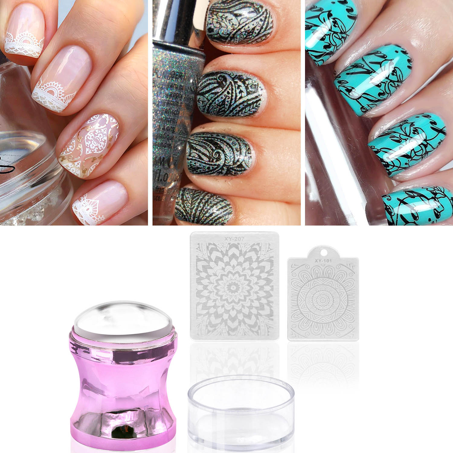 Nail Art Stamper,Pinkiou Nail Stamper Kit, Nail Stamping Plate Clear Silicone Nail Stamper French Tip Nail Stamp with Template Scraper Nail Plates,Stamper For Nails with 5PCS Stamping Plates