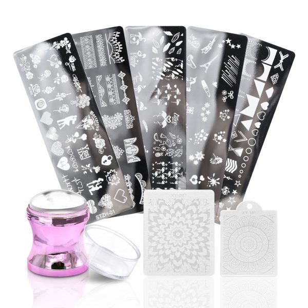 - Perfect Combination – This nail stamping kit include 1 purple jelly nail stamper,2 white template scraper(can be use as nail stamping plate and scraper),5 pieces stamping plate.