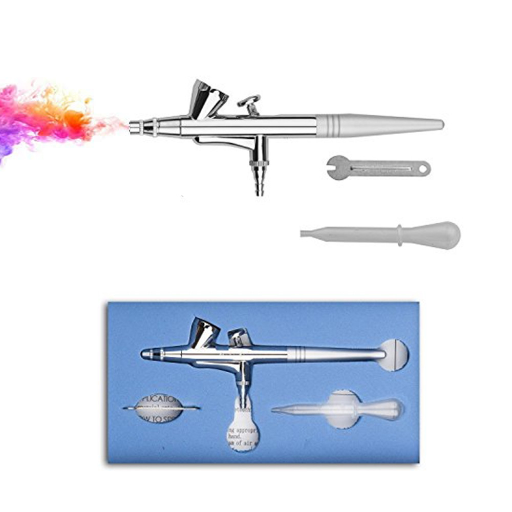 Pinkiou Dual Action Airbrush Makeup Kit 0.4mm Needle Air Brush Spray Gun Body Paint Makeup Nail Aerograph Painting Tattoo (Silver)
