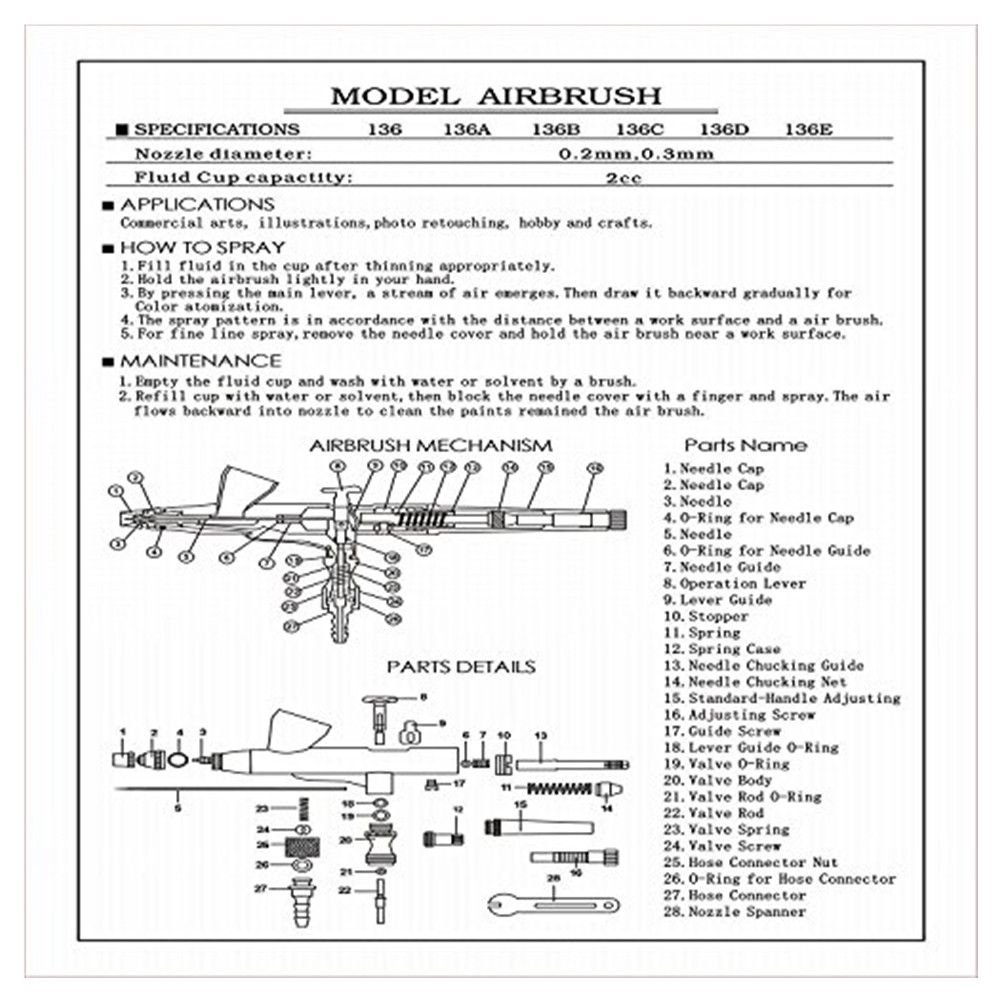Single-action Trigger Air-paint Control.Easy fluid refills and easy cleaning. Maintenance free, Oil-less and Quiet.