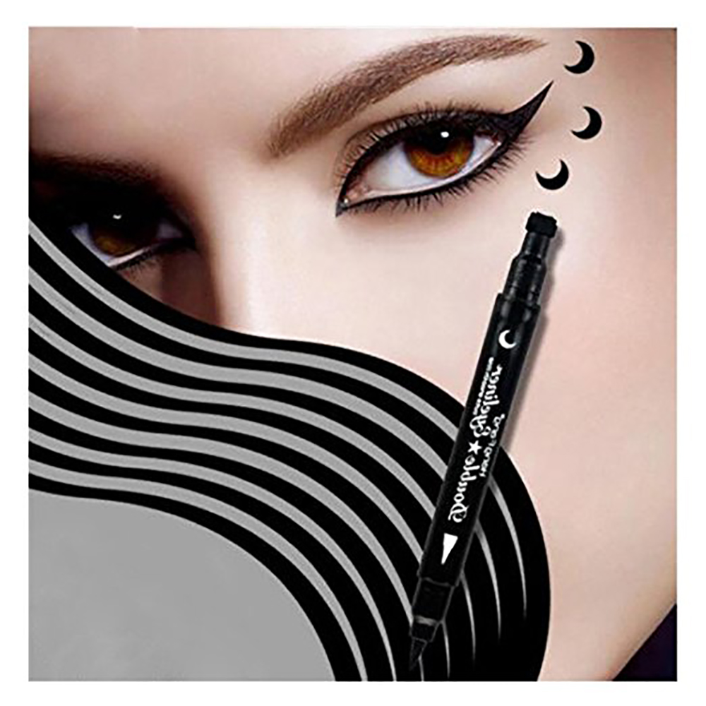 - Double-headed Design: one side is eyeliner pencil pen, one side is eyeliner stamp. This allows you to get rid clutter and make one purchase because you do not need a messy brush, pencil and ink allowing you to complete cat wing eye makeup with one tool.