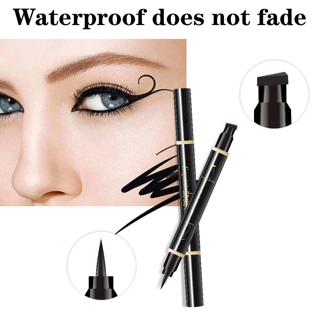 - Double-Ends Eyeliner Pencil,One end is ultra fine tip which defining the rest of the eye with precision,The other head is curve stamp which provide a quick natural cat eye look / flick.